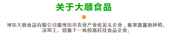 濰坊大順食品有限公司創(chuàng)建于2006年10月,位于中國出口蔬菜基地安丘市。地位置優(yōu)越,距離青島港100公里,是濰坊市農(nóng)業(yè)產(chǎn)業(yè)化龍頭企業(yè),2022年被授予國家級(jí)高新技術(shù)企業(yè),2024年被授予省“專精特新中小企業(yè)”。公司通過了歐盟BRC質(zhì)量體系認(rèn)證,ISO9000認(rèn)證,清真HALAL認(rèn)證。公司占地面積26680㎡,員工190人,主要制造、銷售VF果蔬脆片、FD凍干果蔬、香菇素牛肉、黑蒜等產(chǎn)品,年產(chǎn)能6000噸,創(chuàng)匯1000萬美元!